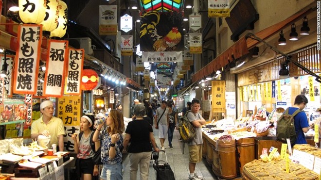 Khu chợ 400 năm tuổi Nishiki bán đủ thứ, từ cá tươi, rượu sake đến các loại donut. Để đi hết chợ du khách cũng phải mất đến vài giờ đồng hồ.