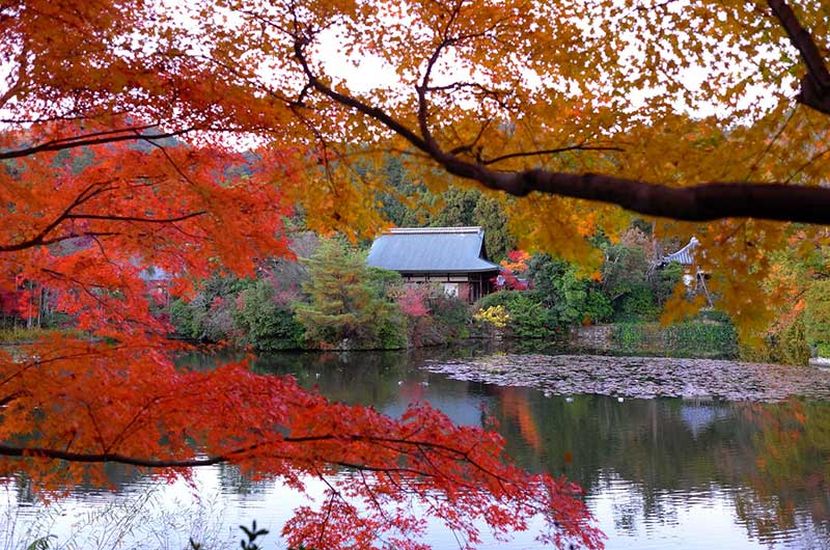 Chùa Byodo làm từ gỗ được xây dựng vào năm 1968 ẩn mình trong rừng sâu và bên cạnh một hồ nước nhỏ. Mặc dù có niên đại gần đây, nhưng chùa là một minh chứng cho sự phát triển hoàn hảo về phong cách kiến trúc tôn giáo. Chùa tọa lạc trên con đường từ Kyoto hướng đến cố đô Nara, có con sông Uji nổi tiếng với phong cảnh hữu tình. Hằng năm, khách đến viếng thăm chùa không đếm xuể, đặc biệt khi mùa thu Nhật Bản tràn về, khung cảnh lãng mạn lá vàng, lá đỏ làm ngôi chùa nổi bật hơn hẳn.