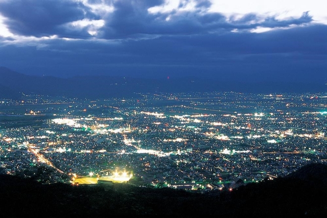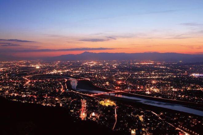 Núi Kinda (Gifu): Du khách có thể chọn dùng cáp treo hoặc đi bộ để lên núi Kinda. Từ đỉnh núi nhìn xuống, bạn sẽ thấy lâu đài Gifu nổi bật giữa khung cảnh đêm.