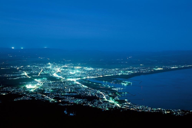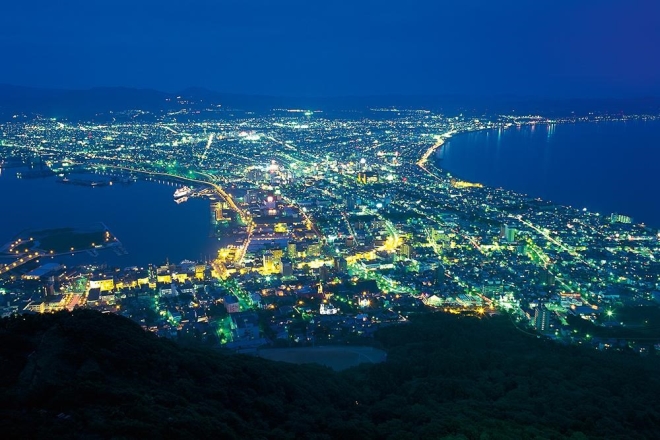 Núi Hakodate (Hokkaido): Từ đỉnh núi, du khách có thể nhìn thấy toàn thành phố Hakodate có hình dáng giống một chiếc quạt, với bãi biển uốn lượn 2 bên.