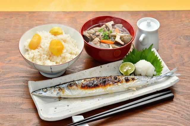 Bên cạnh những điểm tham quan, mùa thu Nhật Bản còn hấp dẫn du khách với những món ăn đặc trưng. Trong đó phải kể đến cá thu đao nướng, hồng sấy, súp, nấm Matsutake, khoai lang nướng, lá phong và vừng tẩm bột chiên giòn.