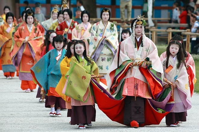 Lễ diễu hành với những bộ trang phục truyền thống tuyệt đẹp trong lễ hội Aoi.