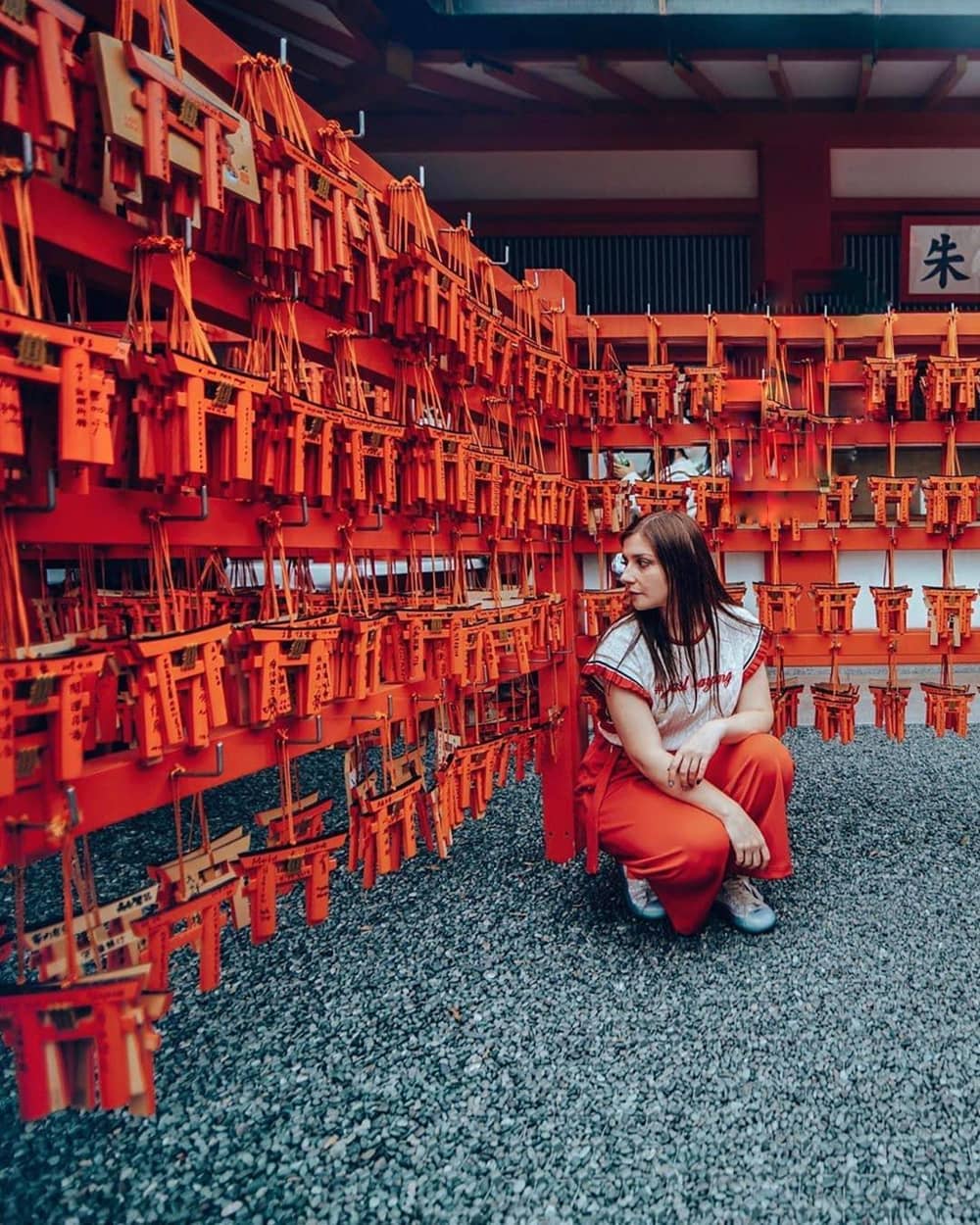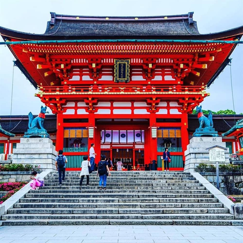 Những con đường mòn dẫn đến điện thờ chính được bao bọc bởi hàng cây um tùm và hàng nghìn cổng đền Torii. Màu xanh của lá hòa lẫn vào màu đỏ của những chiếc cổng tạo nên vẻ đẹp tuyệt vời hiếm nơi nào có được. Ảnh: Kyototravel.