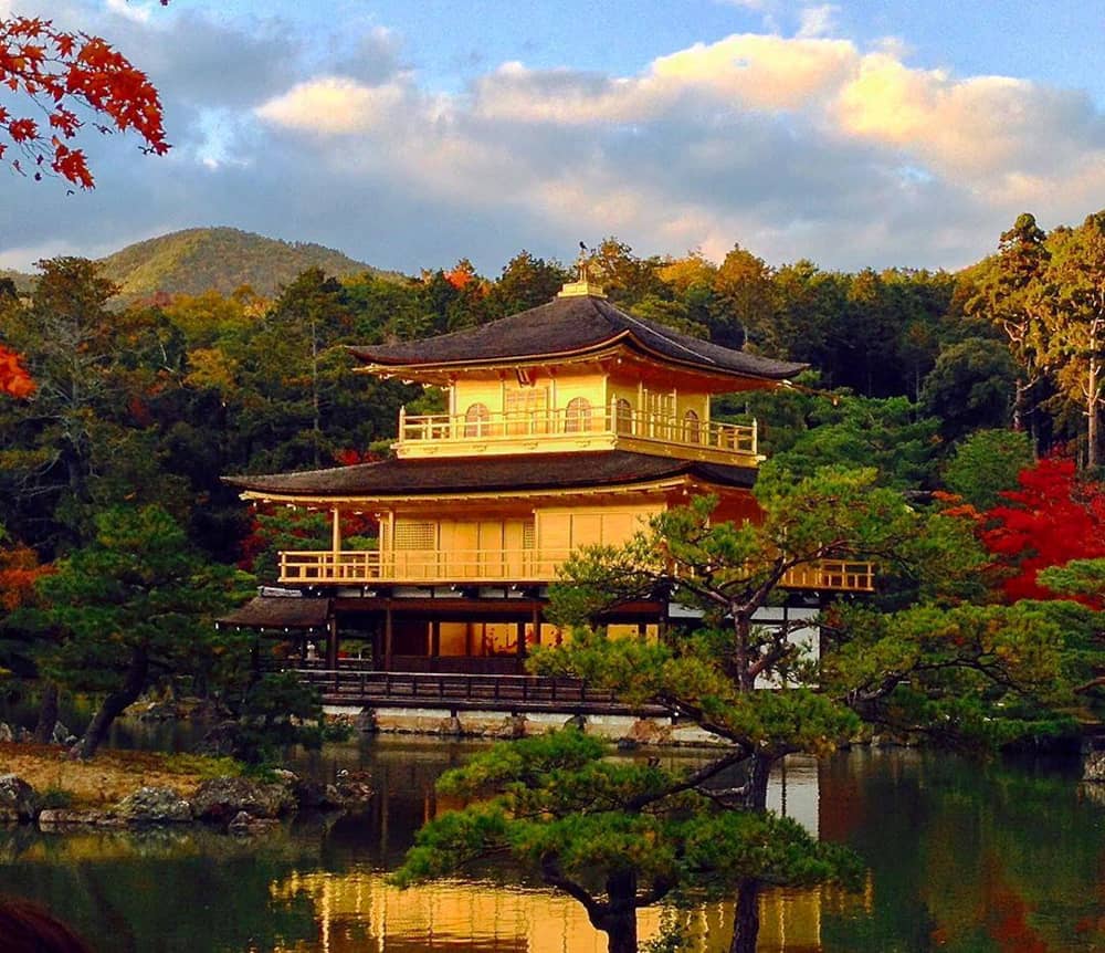 Kinkaku-Ji (Golden Pavilion) là ngôi chùa ở phía bắc Kyoto có hai tầng trên cùng được bao phủ hoàn toàn bằng vàng. Ngôi chùa là sự phối hợp hài hòa của kiến trúc với bối cảnh thiên nhiên xung quanh. Từ những tán cây xanh, mặt nước long lanh như gương sáng đến những con đường bao quanh hay từng khối đá nhô lên tưởng chừng đã được bài trí đến cảnh giới hài hòa nhất của kiến trúc. Ảnh: alexx_lap.