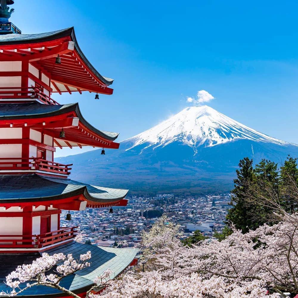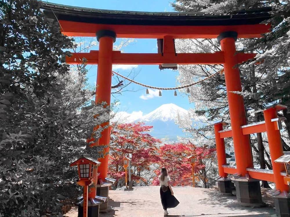Chùa Chureito nằm ở thành phố Fujiyoshida, thuộc tỉnh Yamanashi, khá gần với hồ Kawaguchi và Yamanakako. Với tầm nhìn bao quát hết đỉnh Phú Sĩ, đây là điểm thường xuyên được nhiều du khách lựa chọn khi ghé thăm đất nước xứ phù tang. Mùa đẹp nhất để ghé thăm nơi đây thường là mùa xuân, khi những bông hoa anh đào đua nở. Ảnh: Japan Rail Pass, Melanieg Travel Photography.