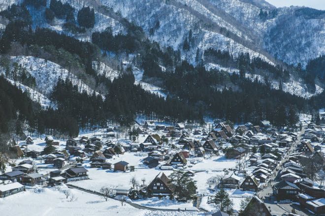 Tuyết phủ trắng ngôi làng cổ Shirakawa-go.