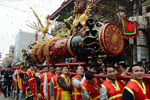 7. Khai ấn Đền Trần, Nam Định Lễ hội ở đền Trần thường diễn ra 3 ngày, từ 13 đến 15 tháng Giêng âm lịch hàng năm. Hội mở đầu bằng lễ khai ấn bắt đầu từ giờ Tý (giữa đêm). Ấn được phát tại 3 nhà là nhà Giải Vũ, nhà trưng bày đền Trùng Hoa và một điểm trong khu vực vườn cây đền Trần. Thời gian gần đây, ngày càng nhiều người tới hành lễ tại đền Trần vào dịp hội để xin/mua được tờ ấn với mong ước sẽ được thăng tiến trong nghề nghiệp.