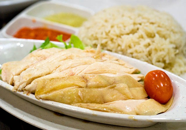Nếu bạn hỏi đâu là món ăn phổ biến nhất Singapore, rất có thể, mọi người sẽ trả lời cho bạn hai đáp án. Đó là cua xốt ớt và cơm gà Hải Nam. Với món cơm gà, bạn có thể tìm thấy ở hầu hết mọi nơi tại Singapore, từ các nhà hàng sang trọng đến các quầy hàng nhỏ trên phố. Món ăn hấp dẫn với miếng gà hấp thơm ngọt dọn kèm phần cơm nóng xốt, dẻo thơm, vài lát dưa leo và nước xốt gừng.