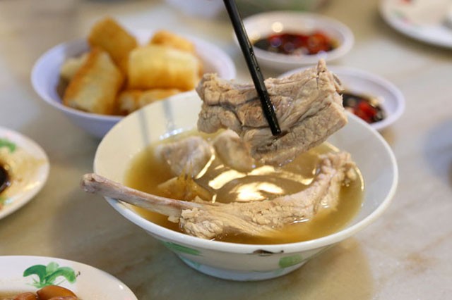 Bak Kut Teh là món súp sườn heo gốc Phúc Kiến, Trung Quốc rất được yêu thích ở Sigapore. Sườn heo trước khi được ninh sẽ được luộc sơ sau đó ướp với thật nhiều tỏi, tiêu, thảo dược, gia vị và hầm trong nhiều giờ liền để cho ra hương vị thơm ngon, tinh tế. Không chỉ ngon, đây còn được xem là món ăn bổ dưỡng giúp phục hồi sinh.