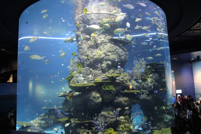 Bạn cùng gia đình có thể ngắm nhìn hơn 200 loại cá mập hay xem các loài cá đuối lớn và lươn biển. Khu vực trung tâm của thủy cung ở Singapore là một “bể cá khổng lồ” được tạo thành bởi tấm kính lớn nhất thế giới với chiều rộng 36m, cao 8,3m. Qua hệ thống ô kính trong suốt, bạn có thể thỏa sức ngắm cá mập, cá heo và nhiều loài sinh vật lạ khác.
