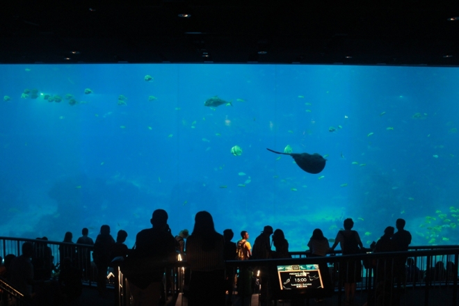 Thủy cung S.E.A. Aquarium tọa lạc tại đảo Sentosa, được mệnh danh là thủy cung lớn nhất thế giới – nơi trưng bày hơn 100.000 sinh vật biển thuộc 800 loài.