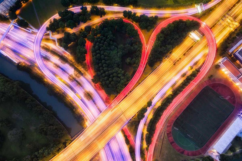 Giao lộ đường cao tốc tạo nên hình trái tim lãng mạn, đầy màu sắc.