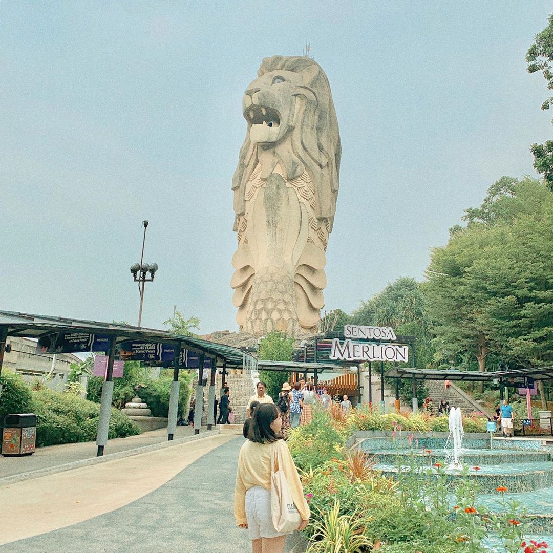 Tượng Merlion trên đảo Sentosa là bức tượng to lớn nhất với chiều cao lên đến 37m. - (Ảnh: @_juliepanda)