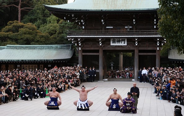 Giải đấu vật truyền thống đầu năm được tổ chức tại đền Thiên Hoàng Minh Trị ở Tokyo. Ảnh: Zimbio.