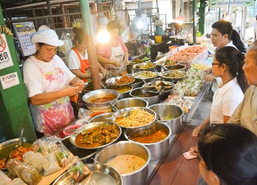 Ra khỏi Rachawat và đi xa hơn khoảng 1km, khu chợ Sriyan cùng những món ăn truyền thống Thái Lan đang sẫn sàng chào đón. Văn hóa ẩm thực dân gian được thể hiện phong phú qua số lượng, hình thức trình bày, màu sắc, mùi vị và sự thân thiện nhiệt tình của người dân bản xứ chắc chắn sẽ khiến bạn hài lòng.