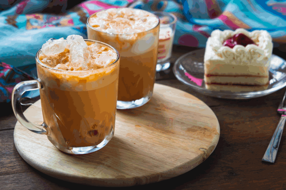 Món đường phố làm xiêu lòng nhiều du khách ở Thái Lan là trà sữa. Trà sữa Thái phổ biến có màu cam và màu xanh. Loại trà màu cam đặc trưng được pha từ hồng trà với sữa (sữa bột, sữa đặc hoặc kem). Ly trà sữa đậm vị béo nhưng vẫn không mất đi mùi trà đặc trưng. Du khách có thể bắt gặp đồ uống giải nhiệt này trên bất cứ nơi nào ở Thái Lan với giá cả phải chăng.