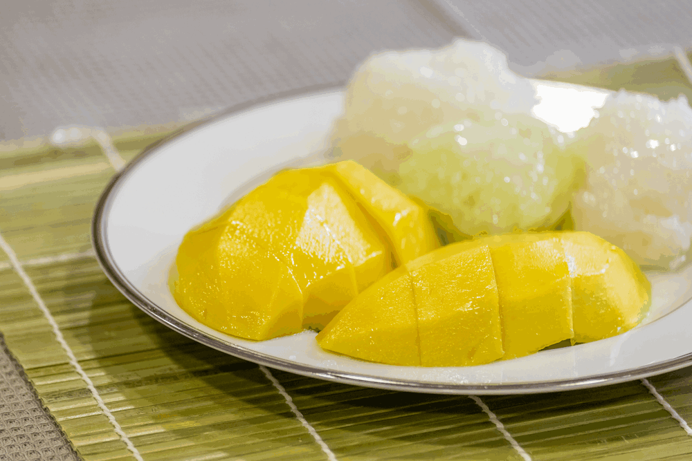 Ẩm thực Thái Lan còn nổi tiếng với món xôi xoài. Nhiều du khách đùa rằng đến Thái Lan mà không thưởng thức món xôi xoài thì quả là thiếu sót lớn. Hai nguyên liệu chính làm nên món ăn là gạo nếp và xoài tươi. Người Thái thường dùng những quả xoài chín ngọt ăn cùng xôi nếp. Bên trên còn cho thêm chút sữa béo thơm. Giá trung bình 15 baht (hơn 10.000 đồng) một suất ở đường phố.