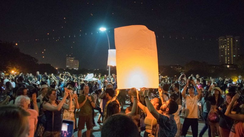 Tại các địa điểm công cộng, những chiếc đèn lồng sáng rực sẽ được thả bay lên không trung suốt đêm. Người dân Thái Lan tin rằng, hành động này biểu trưng cho việc gạt đi những điều phiền muộn, đau khổ của năm cũ.