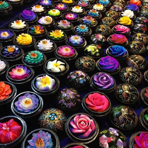 đến Thái dịp cuối năm này còn khoái săn những đồ handmade độc đáo, từ những bánh xà phòng tạo hình ấn tượng, các loại nến thơm, đèn trang trí, các mặt hàng thủ công mỹ nghệ và đồ lưu niệm tinh xảo. Bánh kẹo cũng là món hàng được du khách mua về làm quà cho người thân và thết đãi khách trong dịp Tết.