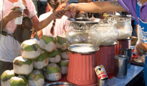 Kính râm, kem chống nắng, bình nước và một đôi giày bệt là vũ khí hiệu quả giúp bạn đủ sức shopping cả ngày trời tại các khu chợ rộng lớn. Cũng có thể uống nước dừa, món giải khát ngon - bổ - rẻ ở chợ hay quầy hàng bên ngoài các khu thương mại, giá 30 bath (khoảng 20.000 đồng).