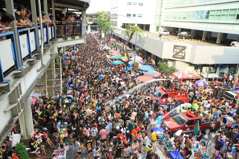 Silom: Đây chắc chắn là điểm tổ chức lễ hội Songkran lớn nhất thủ đô Bangkok. Toàn bộ 5 km đường phố sẽ được lấp đầy bởi hàng nghìn người cầm súng nước, sẵn sàng "tiêu diệt" bất kỳ mục tiêu nào đi ngang qua. Dĩ nhiên, bạn có thể xuống đường đánh một trận ra trò cùng mọi người. Nhưng nếu chỉ muốn thưởng thức Songkran "bình an vô sự", những cầu đi bộ trên cao hẳn sẽ trở thành nơi trú ẩn an toàn nhất.