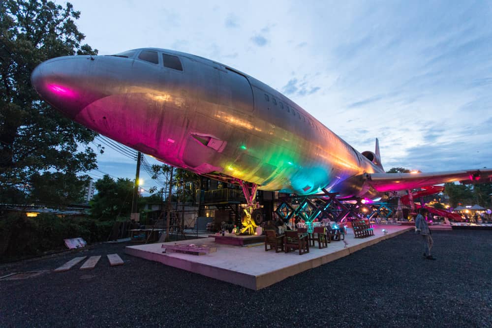 Đặc biệt, chiếc máy bay lớn ở khu trung tâm trở thành biểu tượng của chợ. Ngoài mua sắm, du khách tới đây có thể tham gia nhiều trò chơi, tham quan phòng trưng bày và chụp ảnh "sống ảo". Hầu hết gian hàng là của nghệ sĩ Thái.