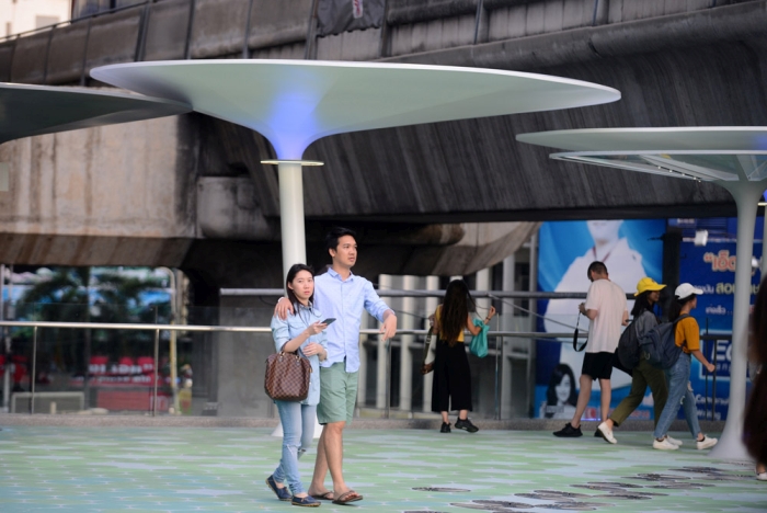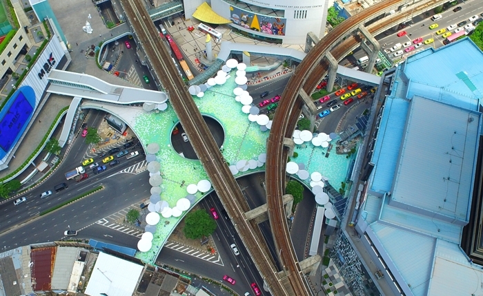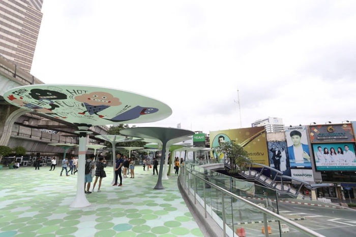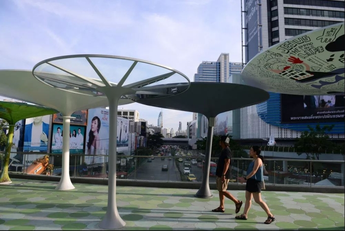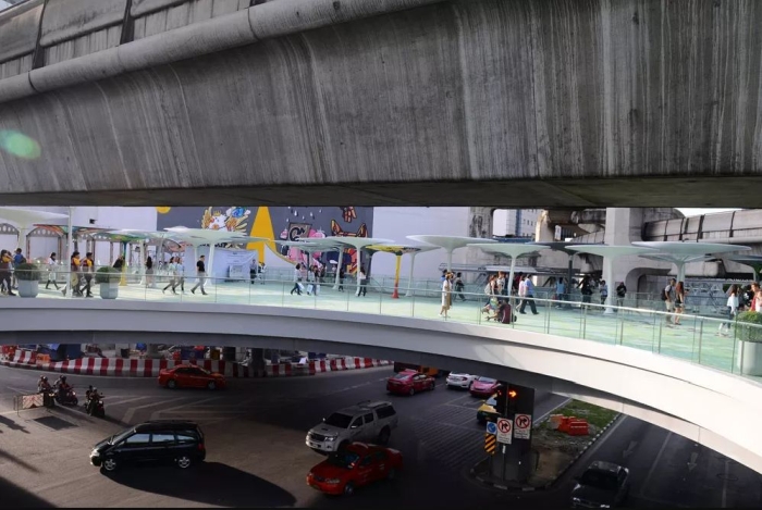 Toàn cảnh công trình đường đi bộ mới tại giao lộ Pathumwan.