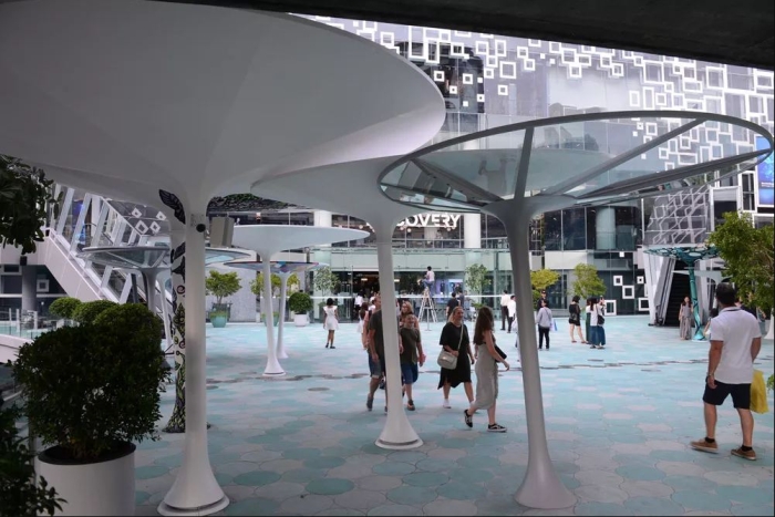 Những kiến trúc hình lá hoa huệ che nắng cho du khách.