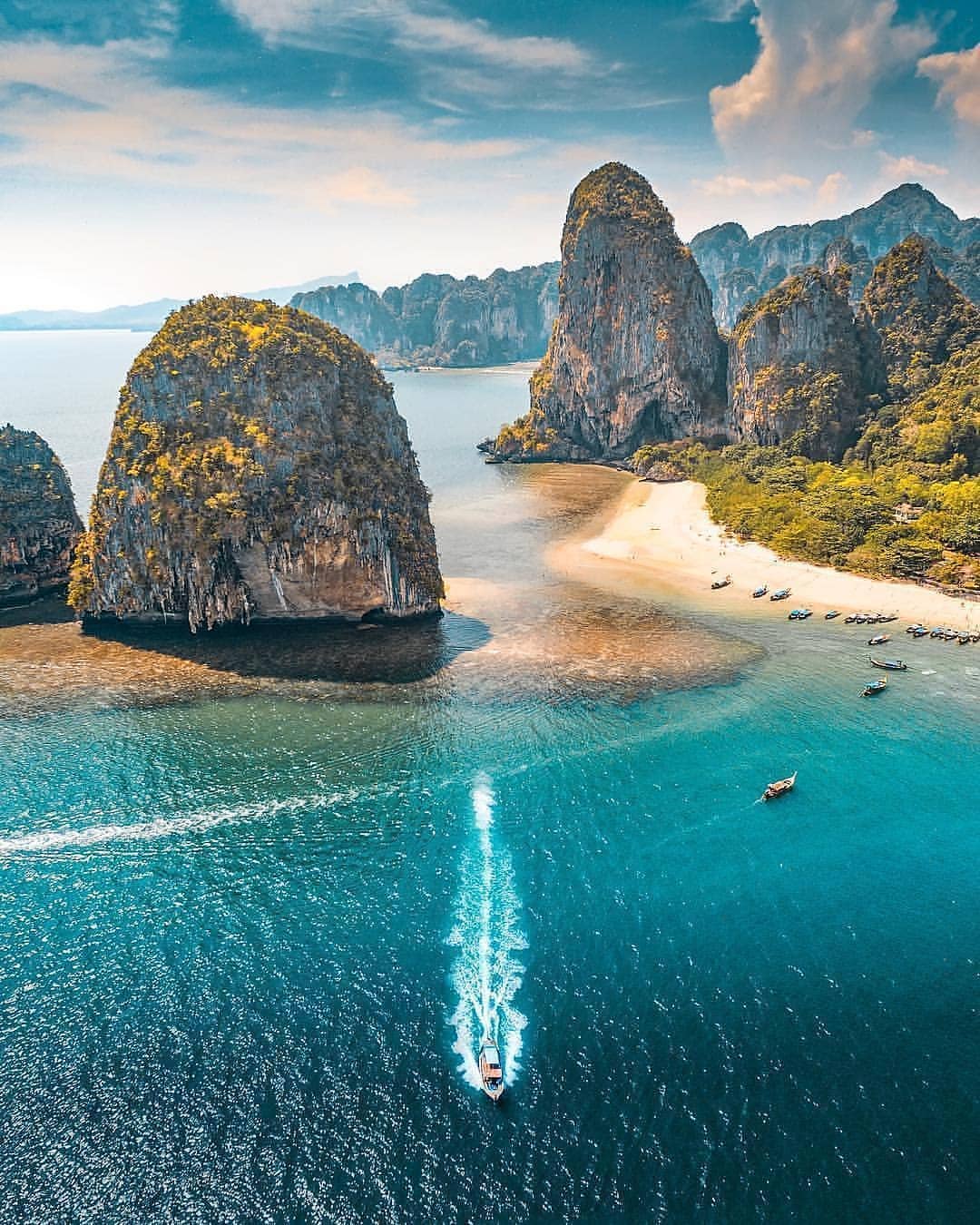 Nằm giữa 2 thành phố ở tỉnh Krabi, bãi biển Railay, hay còn gọi là Rai Leh, tọa lạc trên một bán đảo rộng lớn. Tuy nhiên, du khách chỉ có thể tiếp cận bờ cát trắng ở đây bằng thuyền, do những vách đá vôi cao và dựng đứng chạy ra tận biển.