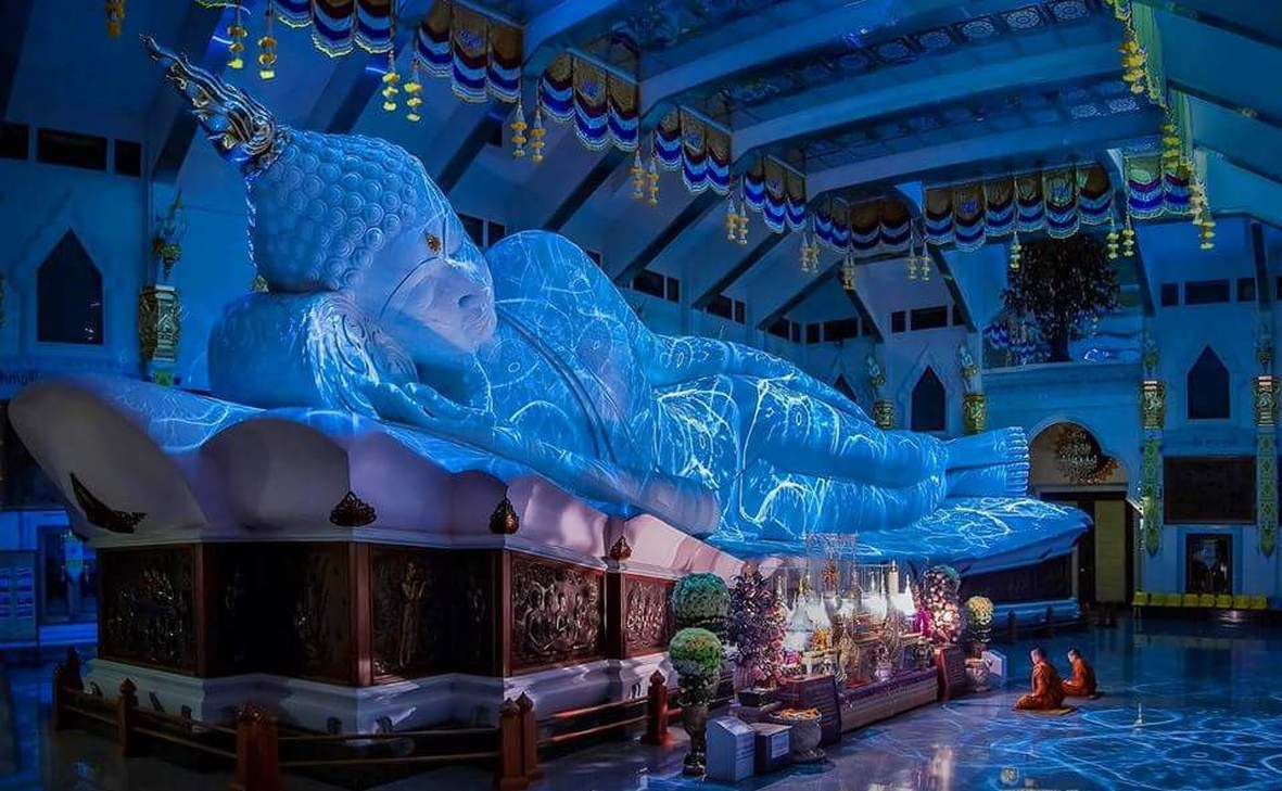Tượng Phật nằm bằng đá trắng trong chùa Pa Phukon.