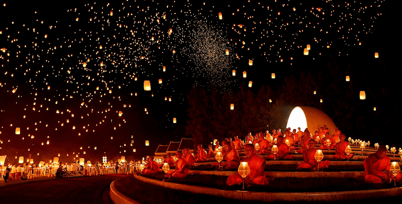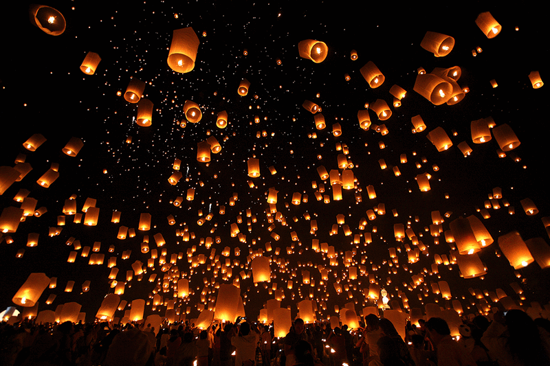 Vào lễ hội Yi Peng, tại nhà dân và khắp các nơi công cộng, những chiếc đèn sáng rực sẽ được thả bay lên không trung suốt đêm. Người Thái tin rằng, hành động này sẽ giúp họ gạt đi những muộn phiền và buồn đau năm cũ đồng thời, những điều bạn ước nguyện trong lúc thả đèn sẽ trở thành sự thật nếu bạn thực hiện những điều tốt lành trong năm sau.