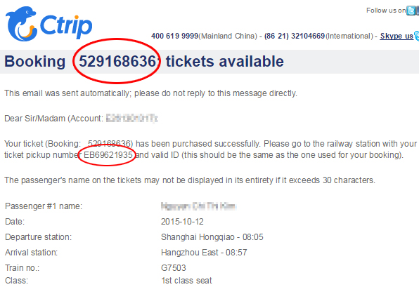 Ctrip là trang đặt vé tàu hỏa online rất phổ biến ở Trung Quốc, hầu hết khách du lịch nước ngoài có nhu cầu đi tàu hỏa, tàu cao tốc đều sử dụng trang web này bởi có hỗ trợ tiếng Anh cho người dùng. Ngoài vé tàu, bạn cũng có thể đặt phòng khách sạn, vé máy bay và tour qua website này.