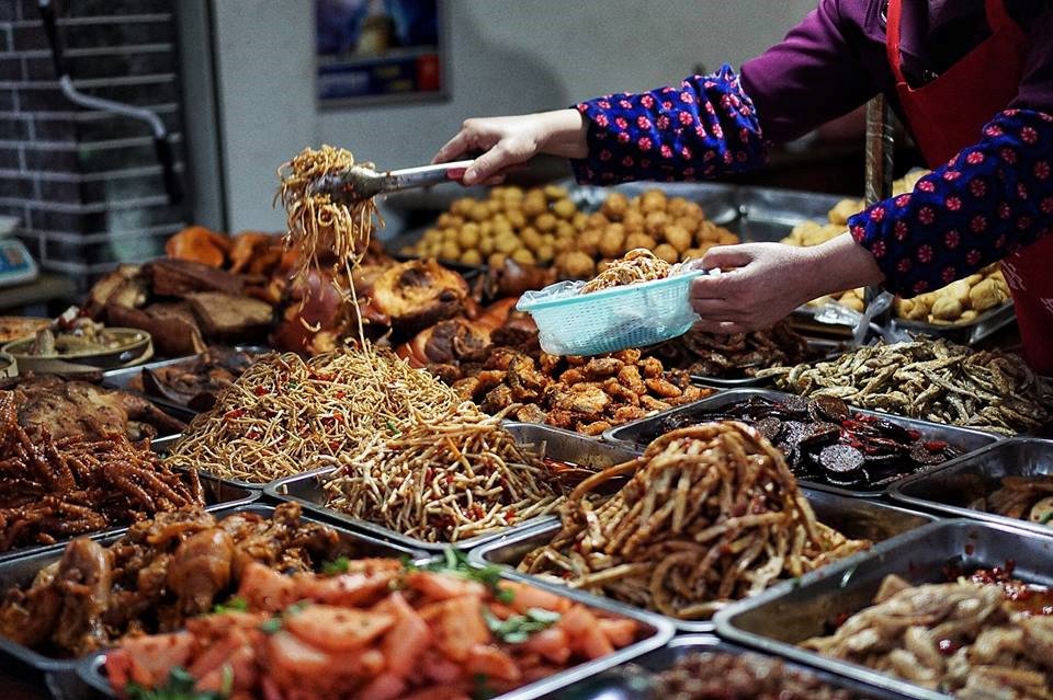 Về ăn uống, Trung Quốc có rất nhiều loại thịt xiên, rau củ quả xiên, thập cẩm xiên… Giá dao động từ 5-10 nhân dân tệ mỗi loại. Đồ ăn Hồ Nam rất cay và mặn. Người Trung Quốc cũng dùng nhiều dầu mỡ và ít ăn rau.