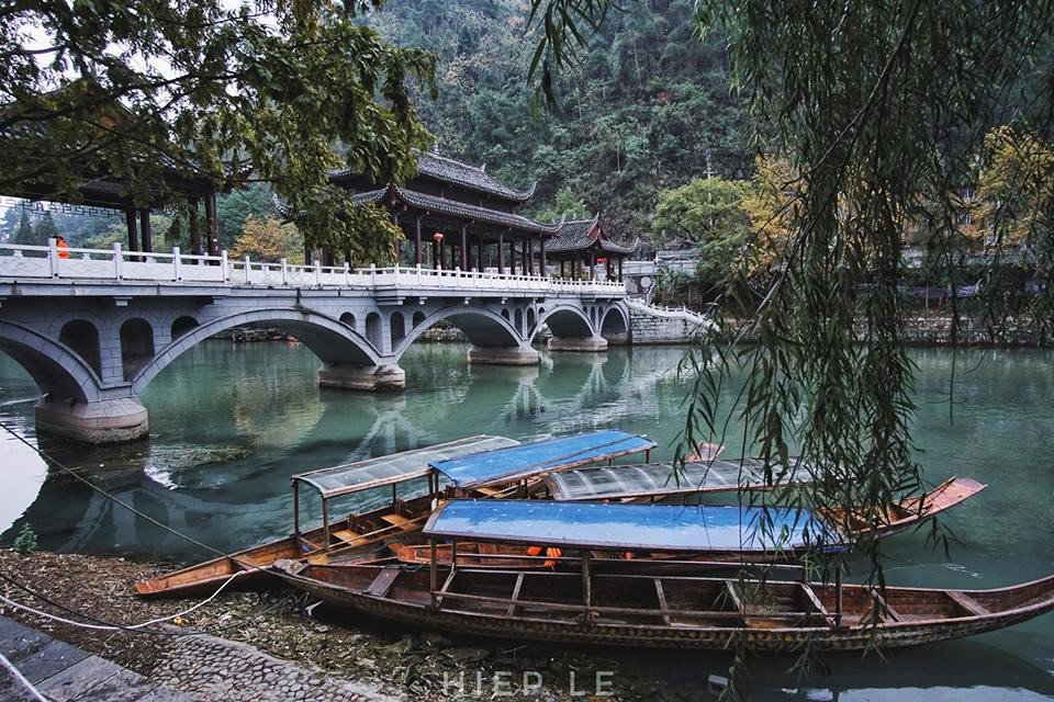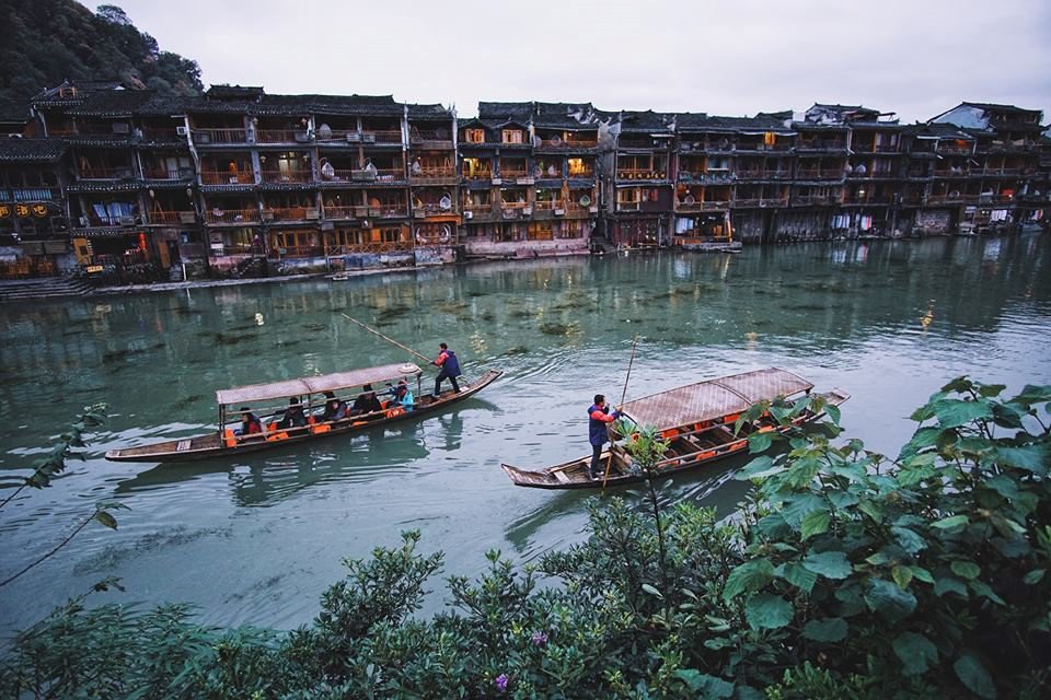 Phượng Hoàng cổ trấn: Đây là tâm điểm hành trình của tôi. Trong thời tiết se lạnh chiều mưa, những mái nhà cổ kính dần hiện ra trước mắt. Hồng Kiều cong cong bắc ngang con sông Đà Giang uyển chuyển, chiếc cầu gỗ, dãy nhà san sát nhau dọc bờ sông… tạo cảm giác huyền bí nhưng cũng rất lãng mạn.