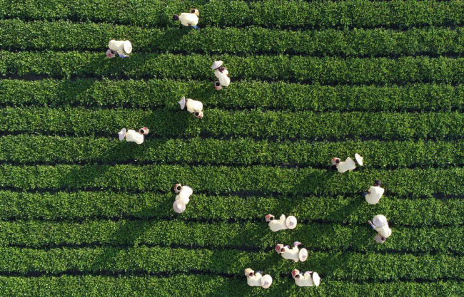 Nông dân hái lá chè ở huyện An Khê, tỉnh Phúc Kiến.