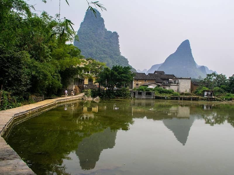 Tọa lạc tại tỉnh Quảng Tây, cổ trấn Hoàng Diệu được bao quanh bởi những dãy núi đá vôi dốc và còn có rất nhiều hang động dành cho du khách khám phá. Đến đây, du khách có thể thoải mái tận hưởng những ngày dài trên sông nước, thưởng thức rượu trên những con thuyền tre mộc mạc khi ghé thăm cổ trấn ven sông này.