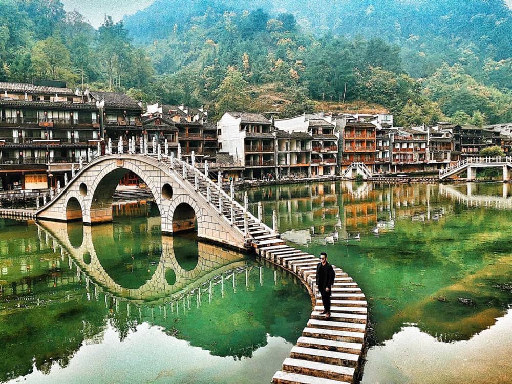 Phượng Hoàng cổ trấn (Hồ Nam): Phượng Hoàng là thị trấn 1.300 năm tuổi, nép mình dưới chân những ngọn núi hùng vĩ ở rìa sông Đà Giang. Tới đây, du khách có thể chiêm ngưỡng những ngôi nhà gỗ cổ trầm mặc, tìm hiểu nền văn hóa đặc trưng và thưởng thức các món ngon. Đặc biệt, phong cảnh nên thơ, hữu tình tại đây sẽ giúp cho những bức ảnh "sống ảo" của các bạn thêm phần lung linh hơn.