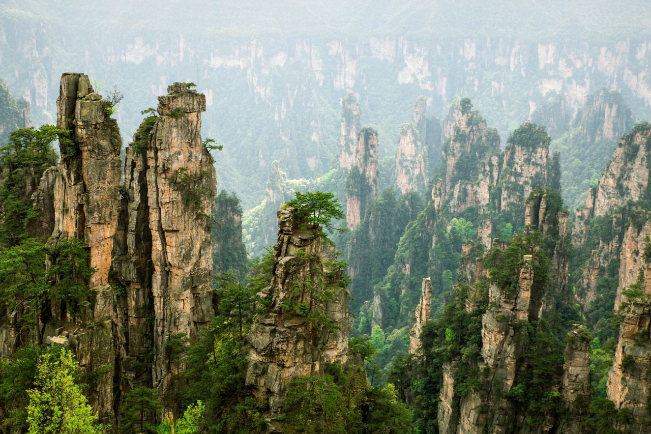 Tại đây có hơn 3100 hòn đá kỳ lạ có độ cao trên 200 mét. Người ta nói rằng ở đây giống như tiên cảnh nơi trần thế. Nơi đây được UNESCO công nhận là di sản văn hóa thế giới và nó cũng nhận được kỷ lục Guinness về ngọn núi đá cao 326 mét. Thời điểm đến đây đẹp nhất là vào mùa xuân và mùa thu, lúc này mây bây bồng bềnh, không khí se lạnh, tạo nên một khung cảnh rất ảo diệu.