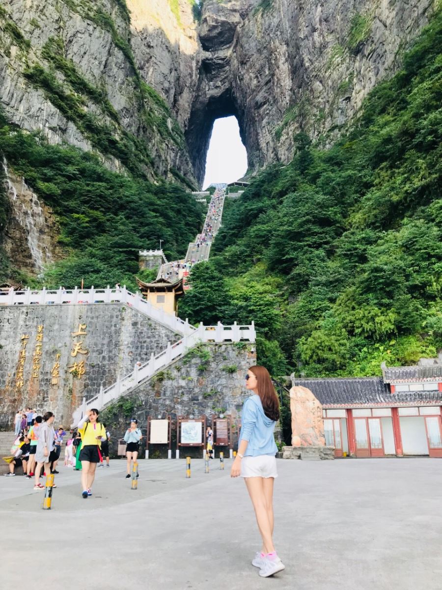 Tại đây có một cái lỗ lớn trống rỗng nằm bên trong một tảng đá khổng lồ và một cầu thang rất dài để dẫn đến một nơi bí ẩn. Người ta bảo rằng phải vượt qua 999 nấc cầu thang thì mới bước đến “cổng trời”. Nếu không muốn đi bộ, mọi người có thể đi bằng cáp treo. Ngoài Thiên Môn ra thì có một cây cầu bằng kính cường lực tên là Skywall được lắp men theo những vách đá hiểm trở. Vào mùa đông đôi khi nó đóng cửa do đóng băng và vì vậy du khách nên ghé thăm vào mùa xuân và mùa thu.