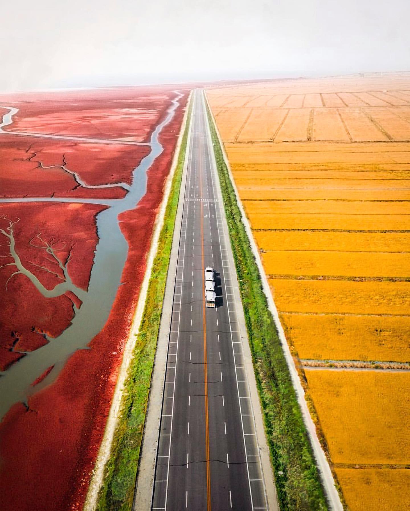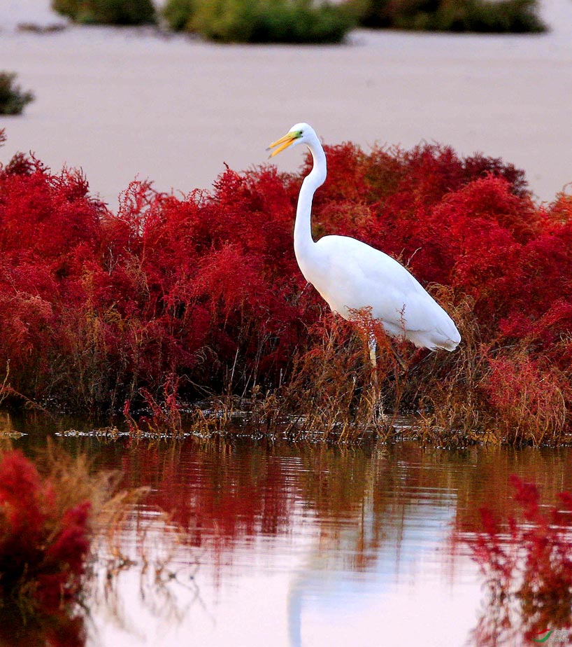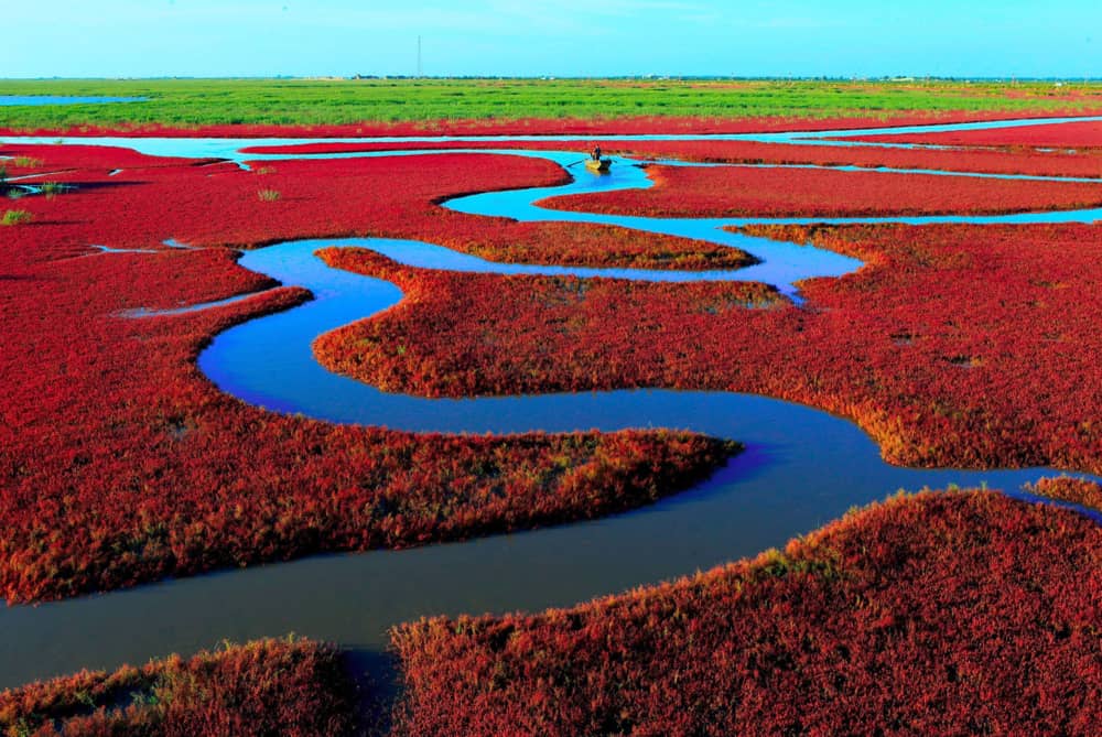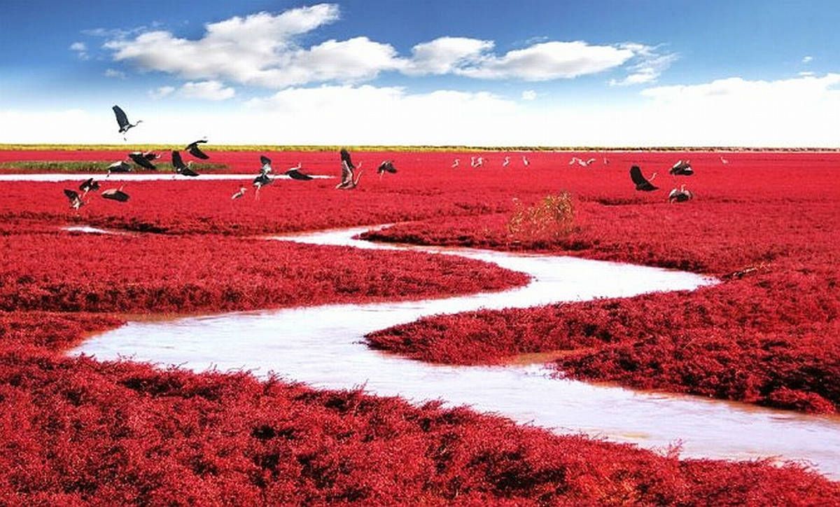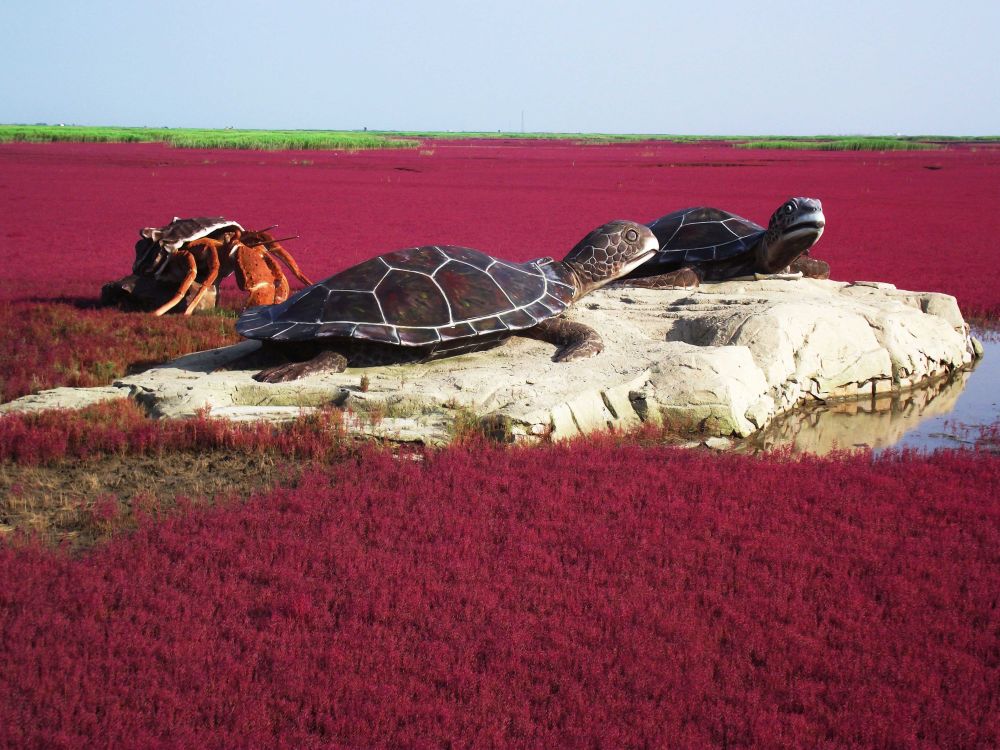 Khoác lên mình một lớp áo dệt từ loại cỏ cực quý hiếm, khu đầm lầy rộng lớn này nhìn qua không có gì khác biệt. Vào mùa hè, loại cỏ biển này vẫn sẽ mọc và phát triển xanh tốt như những nơi khác. Tuy nhiên khi thu đến, chúng sẽ chuyển dần sang màu đỏ thẫm, tạo nên một cảnh quan siêu thực, khiến du khách như bị thôi miên khi ngắm nhìn.