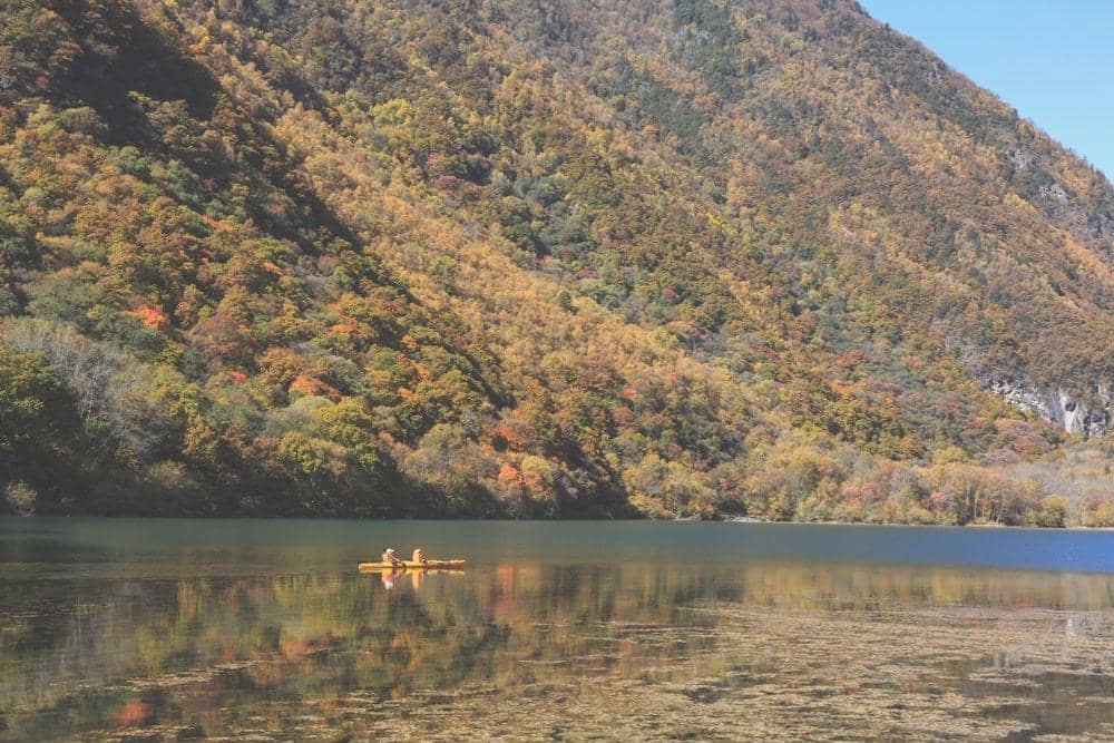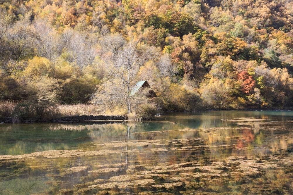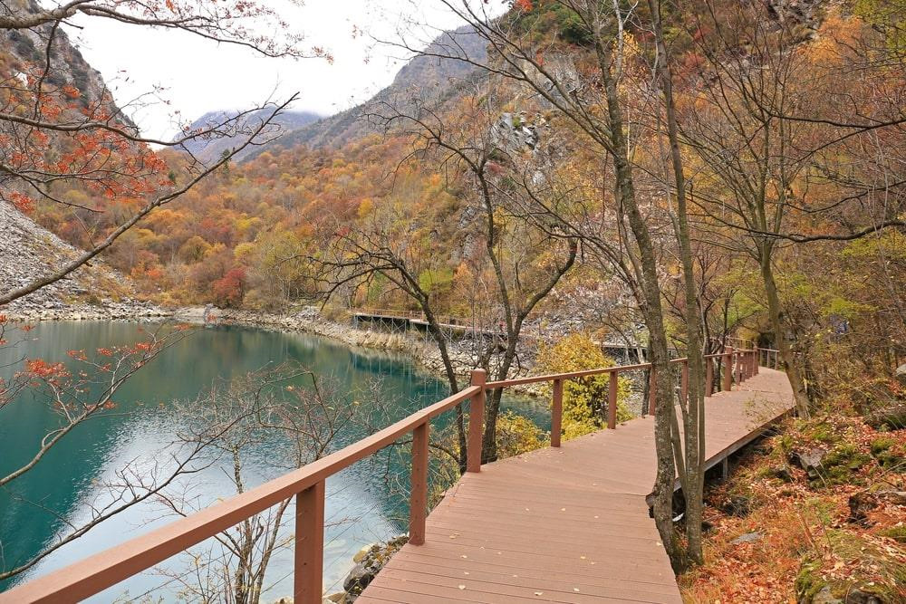 Cuối tháng 9, thời điểm khởi đầu mùa thu cũng là lúc rừng cây nơi đây thay áo mới. Giữa các dãy núi đá hùng vĩ, những tán lá bắt đầu ngả vàng óng ả hòa quyện với màu sắc kỳ ảo của những hồ nước lớn nhỏ. Đặc biệt, màu nước trong hồ có thể thay đổi tùy theo độ tương phản của ánh sáng mặt trời. Bầu trời xanh và những chiếc lá đỏ sặc sỡ phản chiếu xuống làn nước trong vắt tạo khung cảnh thiên nhiên đẹp như bức tranh sơn dầu.