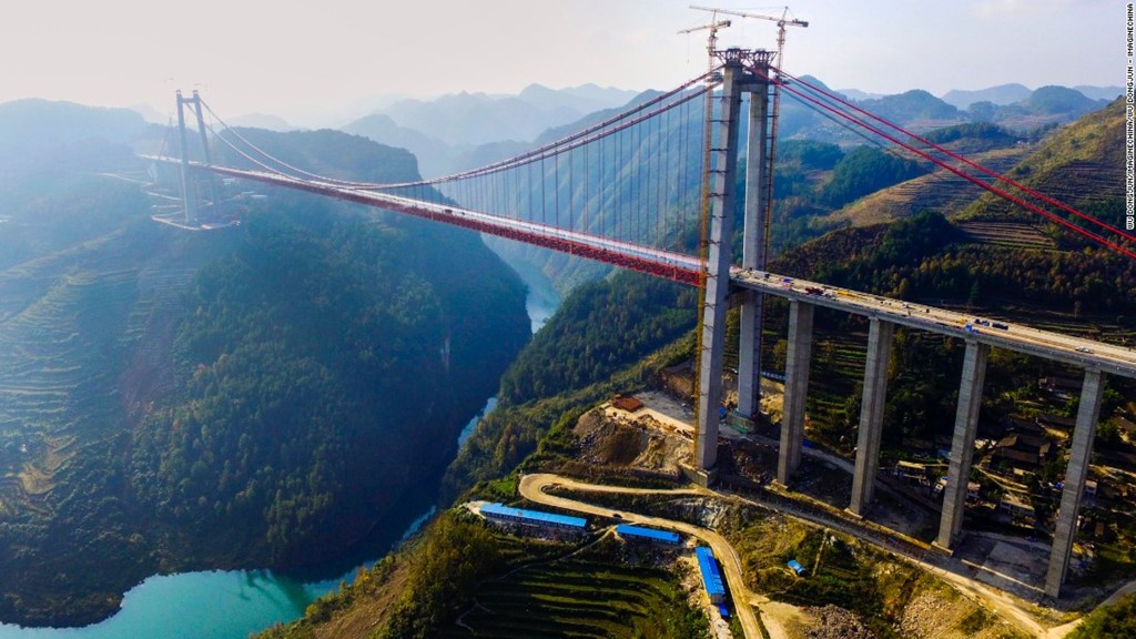 Cây cầu treo khổng lồ dài 2.171 m bắc qua sông Thanh Thủy là một trong những cây cầu lớn nhất thế giới. Cầu vừa được khánh thành năm ngoái.