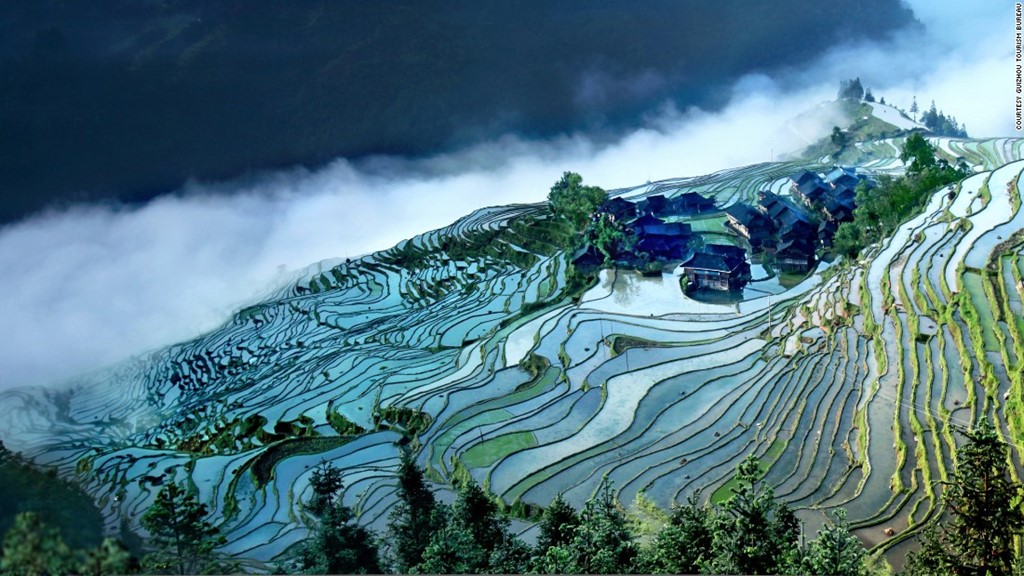 Ruộng bậc thang Jiabang là phương thức canh tác phổ biến ở Quý Châu. Ruộng đẹp nhất vào mùa hè khi những cơn mưa biến những thửa ruộng thành vô số tấm gương dưới làn sương mờ ảo.