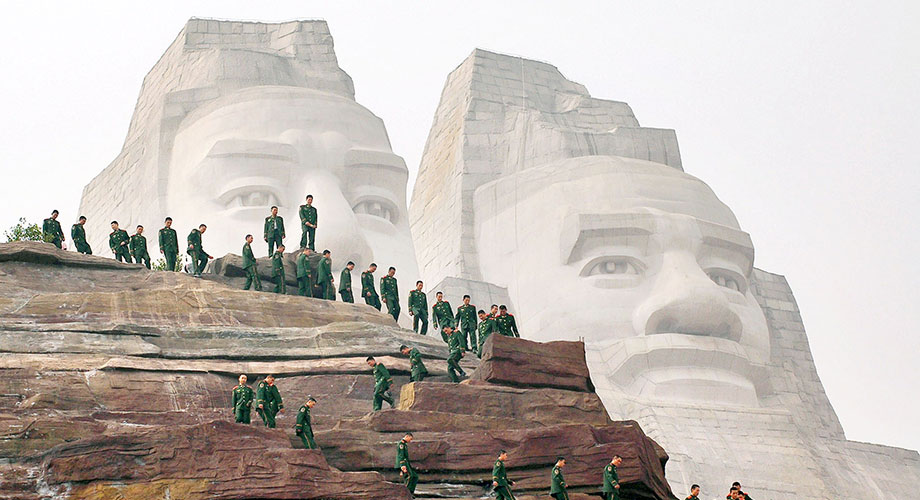 Chiêm ngưỡng vẻ đẹp hùng vĩ của sông Hoàng Hà khi chảy qua một hẻm núi, bên các bức tượng hoàng đế cổ đại Yandi và Huangdi cao 100 mét trên sườn đồi.