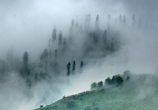 Khung cảnh sương mù bao phủ những ngọn đồi xanh mướt, khiến du khách xao lòng.