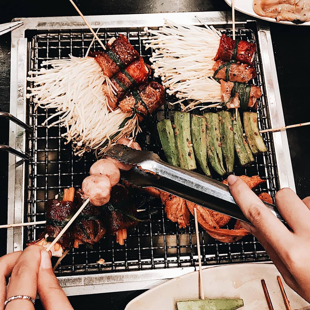 Ăn món nướng sẽ càng hấp dẫn, thú vị khi đi cả hội đông người, vì trong lúc trở xiên que qua lại hai mặt, chờ thịt chín đều, cũng là khoảng thời gian tha hồ ngồi “tám” mà không biết khi nào hết chuyện. Ảnh: Iamfoodtester.