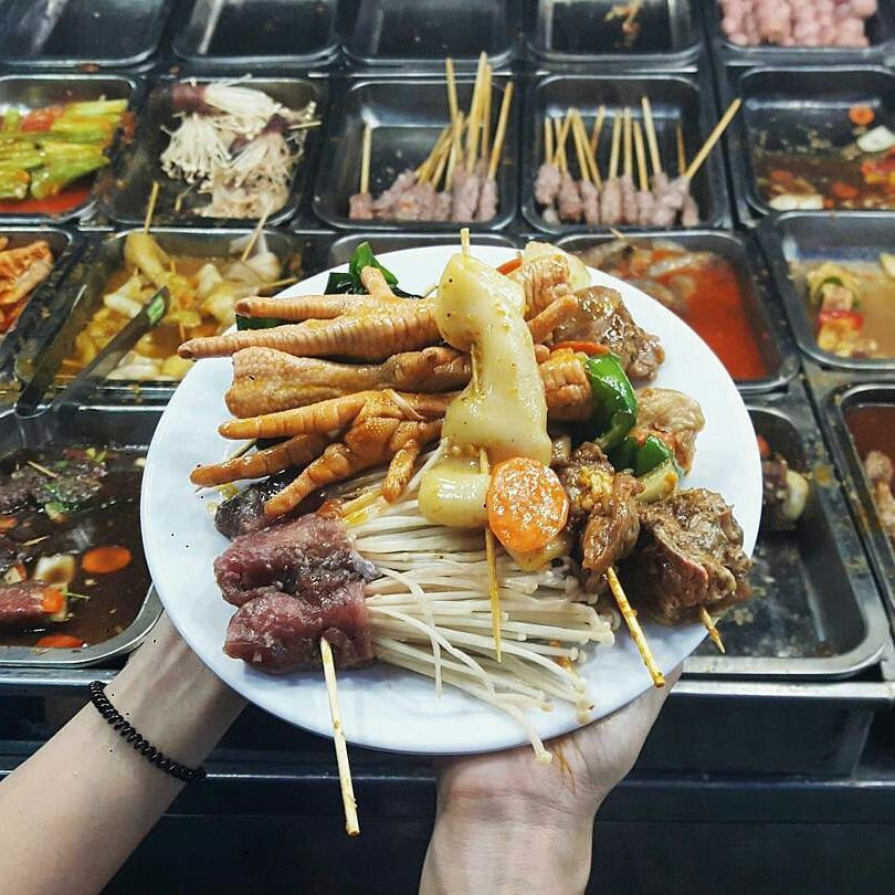 4. Xiên que nướng: Nhiều bạn trẻ Sài Gòn thường muốn thưởng thức một lúc cả “cặp đôi” lẩu tự chọn và xiên que nướng, nên không mấy ngạc nhiên khi các hàng quán bán một lúc cả hai nhằm chiều lòng khách hàng. Ảnh: Aiiimyyy.