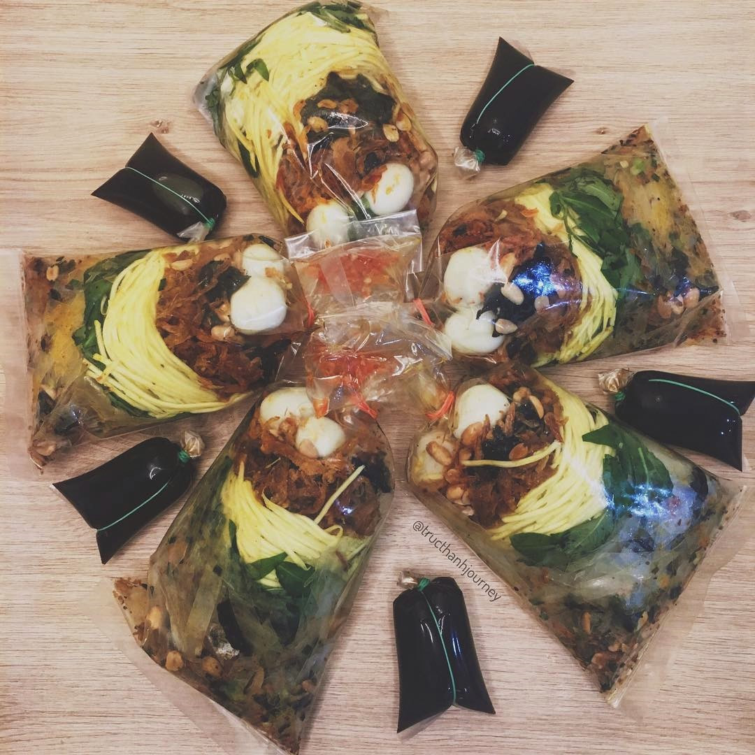 Hay được giới trẻ Sài Gòn truyền tai nhau là bánh tráng trộn Chú Viên ở 38 Nguyễn Thượng Hiền, quận 3. Quán bán lâu năm, giá rẻ, phục vụ nhanh. Còn gì thích thú hơn khi cả hội bạn thân ngồi lại, mỗi người gắp một đũa, thoáng cái, phần bánh tráng trộn đầy ắp đã vơi nhanh từ lúc nào. Ảnh: Foodybychee.