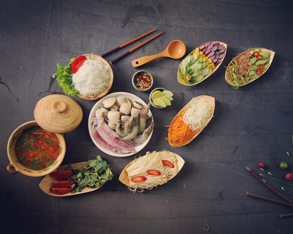 Lẩu thả (Bình Thuận): Lẩu thả là món ăn nổi tiếng hấp dẫn khách du lịch ở khu vực Hàm Tiến và Mũi Né của Bình Thuận. Lẩu thả gồm có cá mai (hoặc cá suốt) và các thành phần trứng, thịt heo luộc, chả lụa và rau củ đều được thái sợi chan cùng nước hầm xương nấu với tôm xay được xào chín. Ảnh: Thu_u.