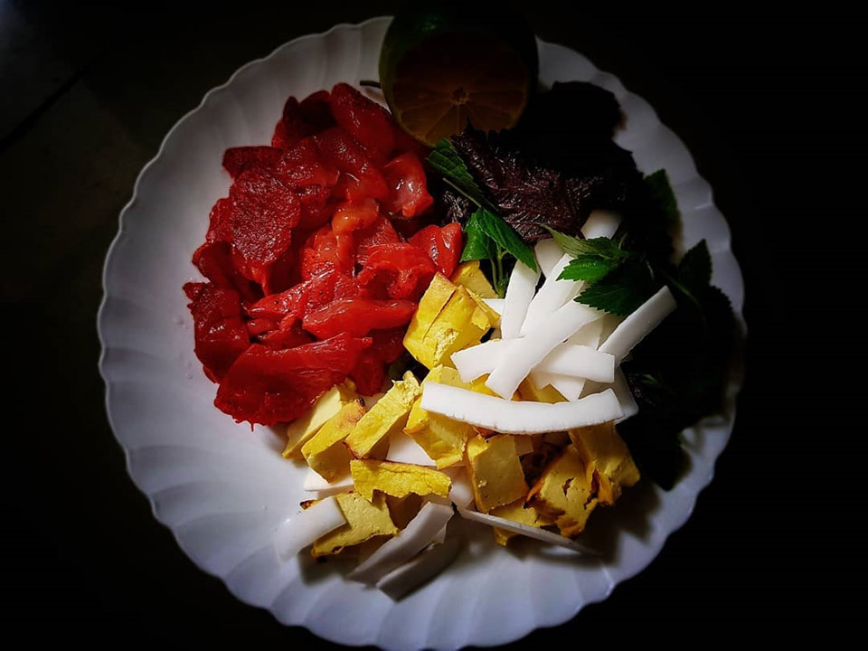 Sứa đỏ: Về Hải Phòng, bạn phải đi đúng mùa sứa đỏ để thưởng thức món gỏi sứa đặc sản đất cảng. Ở đây có thứ nước chấm đặc sánh gọi là dấm bỗng. Để thưởng thức món ăn này, nguyên liệu đi kèm cần phải có đầy đủ bao gồm bỗng, dừa nạo, đậu phụ rán. Bạn quấn các nguyên liệu trên cùng lá tía tô, thêm chút sứa đỏ giòn sần sật và cảm nhận hương vị vừa ngon vừa mát. Ảnh: @henrypiii.